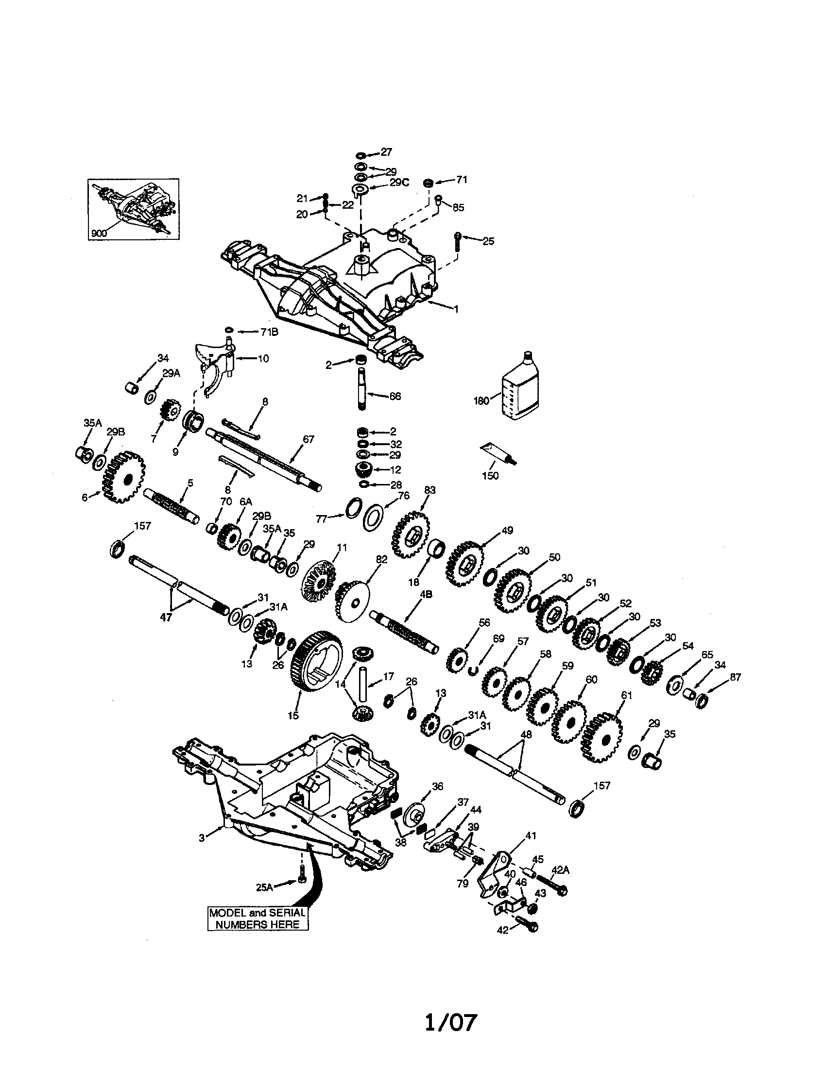 This series of 900 transaxle offers 3 to 7 speeds forward and 1 reverse. H. 930 Series. This unit has 3 to 7 speeds for ward and 1 reverse. The transaxle is very similar to the 920 series except for the dif ferential and shifter/brake shaft. I. The MST Series, (Manual Shift Transaxle) 200 is a sealed unit which uses 16 oz. of 80W90 gear lube ...