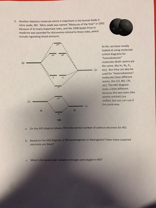 A molecular orbital diagram describes the bonding in terms of constructive and destructive overlap of atomic orbitals. A MO diagram dispenses with the need for resonance. May 24, · Nitric oxide was labeled as the molecule of the year in and a Noble prize was awarded in for research regarding its role in cardiovascular systems.
