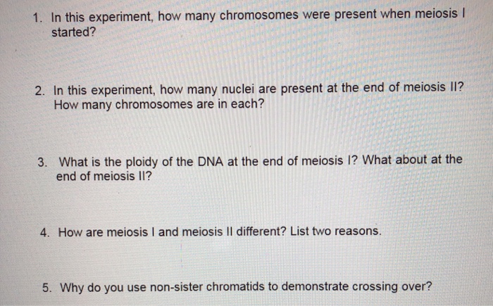 Your Full Name: 102/103. Lab 5: Meiosis. INSTRUCTIONS: and submit it via the Assignments Folder by the date listed in the Course. Schedule (under Syllabus). To conduct your laboratory exercises, use the Laboratory Manual located under. Course Content.