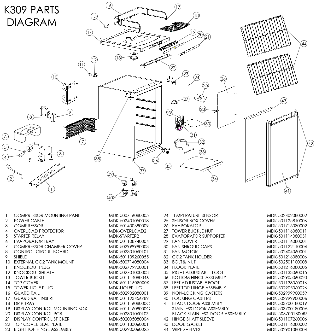 Installation Parts Supply now offers many of the Sankey Coupler D-Style and S-Style Repair Parts for your convenience. 80219 D&S Ball Retainer. 80220 D&S Coupler Ball (Nylon) 80222-01 D-Style Probe, Plated. FT40-15 D-Style Probe Seal. 80228 D&S Hex Nut (beer thread, 29/32-14) 80227 D&S 3/8 Tailpiece for Coupler. If you're installing a new tap system or updating an existing system or kegerator, there are a handful of key components you should be familiar with before you get started.First, let's take a look at a typical draft beer setup. Once you have an idea of what individual parts are involved, we can then delve more deeply into the nitty gritty details of things like keg valves, couplers, regulators ... Kegerator Parts List & Definitions. Below, we have a list of all the different parts of a kegerator, discuss the details of each component and the role each one plays. 1. Faucet Handle. This is the handle that you pull on to release the beer from the tap. There are a wide variety of tap handles, from regular to customizable, that you can choose ... Now connect the beer line from the tower (3) to the keg coupler. Insert the neoprene washer (14) into the beer line hex nut (the beer line is the line coming from the tower and faucet). Remove the blue rubber protective cap located on top of the keg coupler and firmly screw the nut with the neoprene washer to the top of the keg coupler.