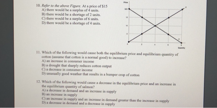 A shortage of 160 units would be encountered if price was: A. $1.10, that is, $1.60 minus $.50. D. D2 is more elastic than D1. 34. Refer to the above diagram and assume a single good. If the price of the good decreases from $6.30 to $5.70, consumer expenditure would: A. decrease if demand... Next PostNext Refer to the table. Suppose that demand is represented by columns (3) and (2) and supply is represented by columns (3) and (5). If the price were artificially set. A surplus of 160 units would be encountered if price was: A.$1, that is, $1 minus $.50. A shortage of 160 units would be encountered if price was Refer to the above diagram, which shows demand and supply conditions in the competitive market for product X. Given D 0 , if the supply... When the price is $100. We know that the price elasticity of demand may be calculated using equation 2.1 from. This will result in a shortage of 4 million. 2. Refer to Example 2.4 on the market for wheat. At the end of 1998, both Brazil and Indonesia opened their wheat markets to U.S. farmers.