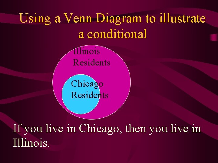 Write the conditional statement that the Venn diagram 8 hours ago Conditional Statements Write Your Own Conditional Statement Make Choose the conditional statement that the venn diagram illustrates 1. 4If it is a fractionthen it is rational number 5If it is an eaglethen it is a bird. Venn Diagrams for Standard Form Categorical Propositions The technique of representing statements by means of Venn Diagrams is explained. Note that the label "things" is written outside the circle, even though "things," if there are any, would be inside For practice, diagram the following statements. The diagrams provided in the answers are only partially... Choose the conditional statement that the venn diagram illustrates... Choose the conditional statement that the venn diagram illustrates 90 degrees right angle.