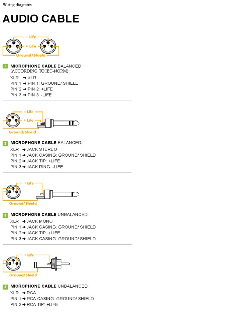 Technical Note TN231 Wiring diagrams (by: Sommer Cable) Wiring diagrams (by: Sommer Cable) AUDIO CABLE MICROPHONE CABLE balanced (according to IEC-Norm): XLR XLR PIN 1 PIN 1: GROUND/ SHIELD PIN 2 PIN 2: +LIFE PIN 3 PIN 3: -LIFE MICROPHONE CABLE balanced XLR JACK STEREO PIN 1 JACK CASING: GROUND/ SHIELD PIN 2 JACK TIP: +LIFE PIN 3 JACK RING: -LIFE MICROPHONE CABLE unbalanced XLR JACK MONO Xlr Wiring Diagram Pdf - Cadician's Blog - Cadillac Xlr Wiring Diagram Pdf | Best Wiring Library - Xlr Wiring Diagram Pdf Wiring Diagram consists of many in depth illustrations that show the relationship of varied items. It consists of instructions and diagrams for various varieties of wiring techniques as well as other items like lights, home windows, etc.